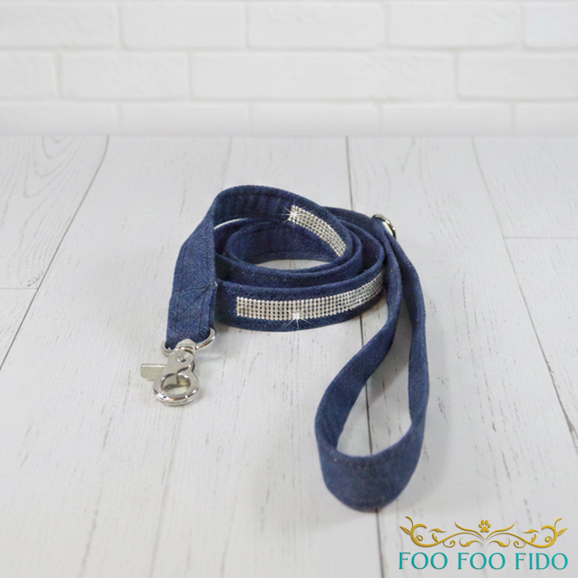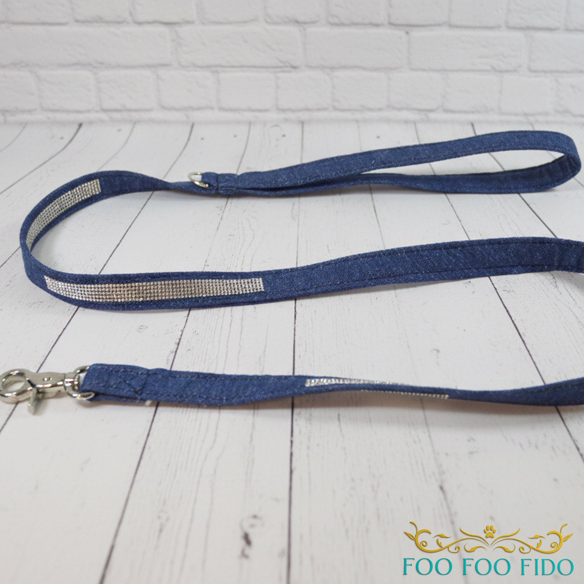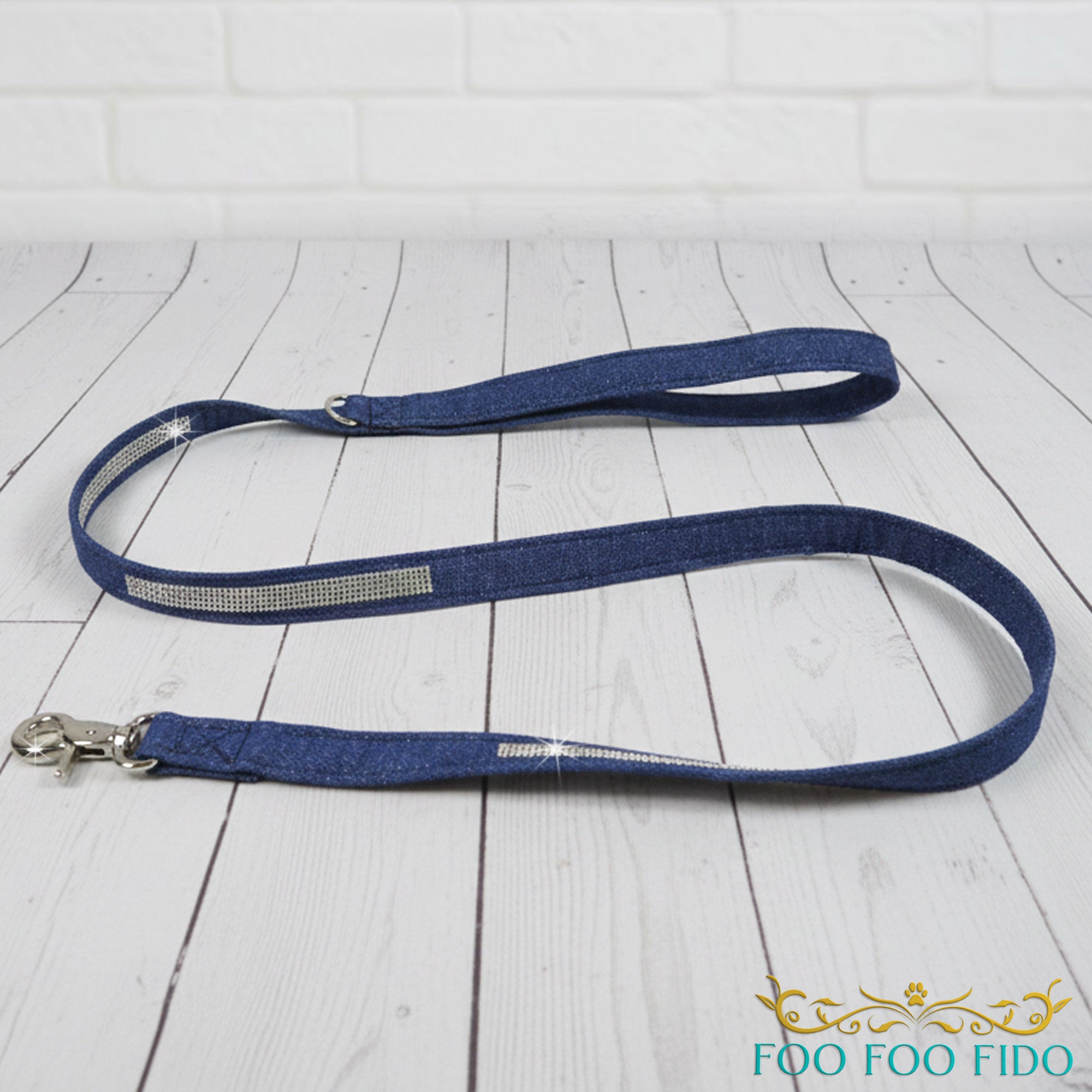 Stylish Denim Dog Leash with crystal embellishment – A Tough Yet Trendy Walking Lead for Fashion-Forward Pups