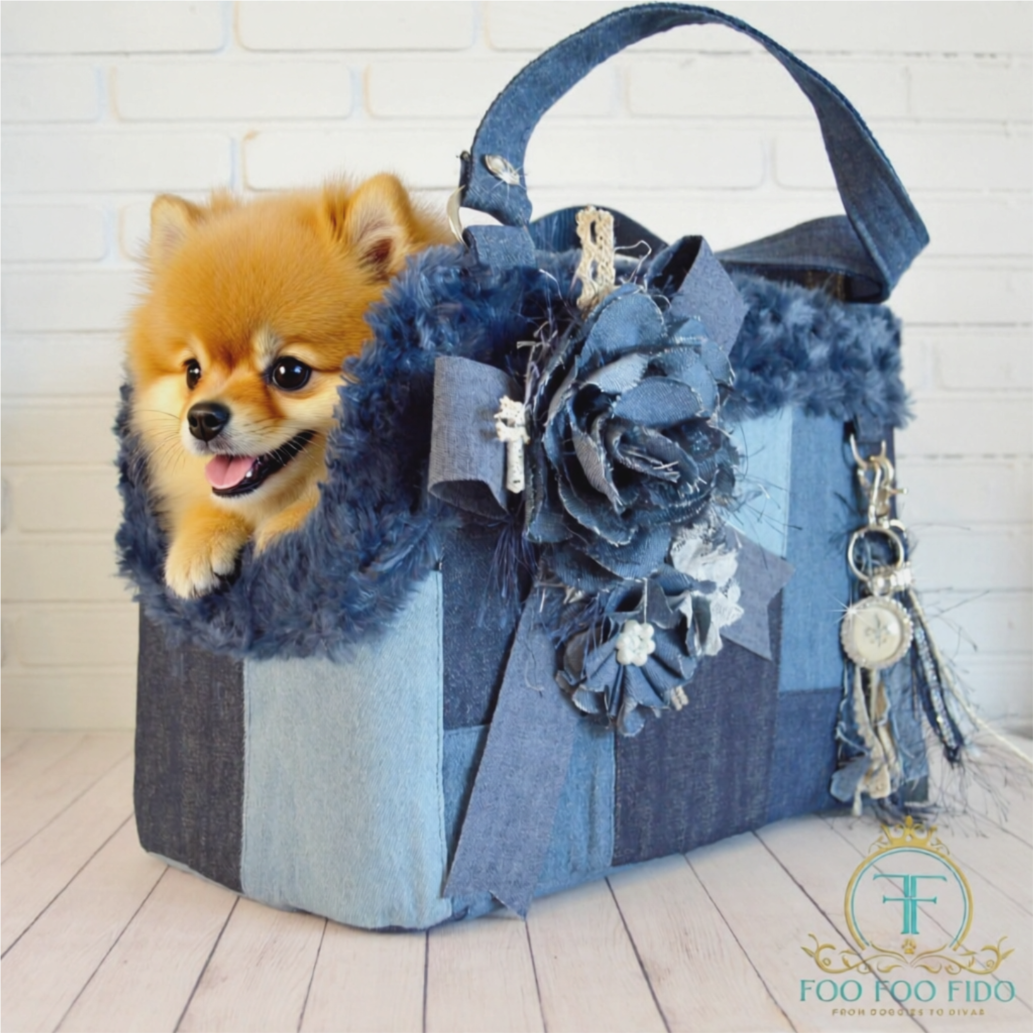 Treat your fur baby to the elegance of our Esmee French Country Pet Carrier. Crafted for the stylish pet parent, this one-of-a-kind patchwork denim bag is as functional as it is beautiful. Whether you’re strolling through a farmer's market or heading to brunch, the Esmee keeps your pet cozy, secure, and undeniably chic.