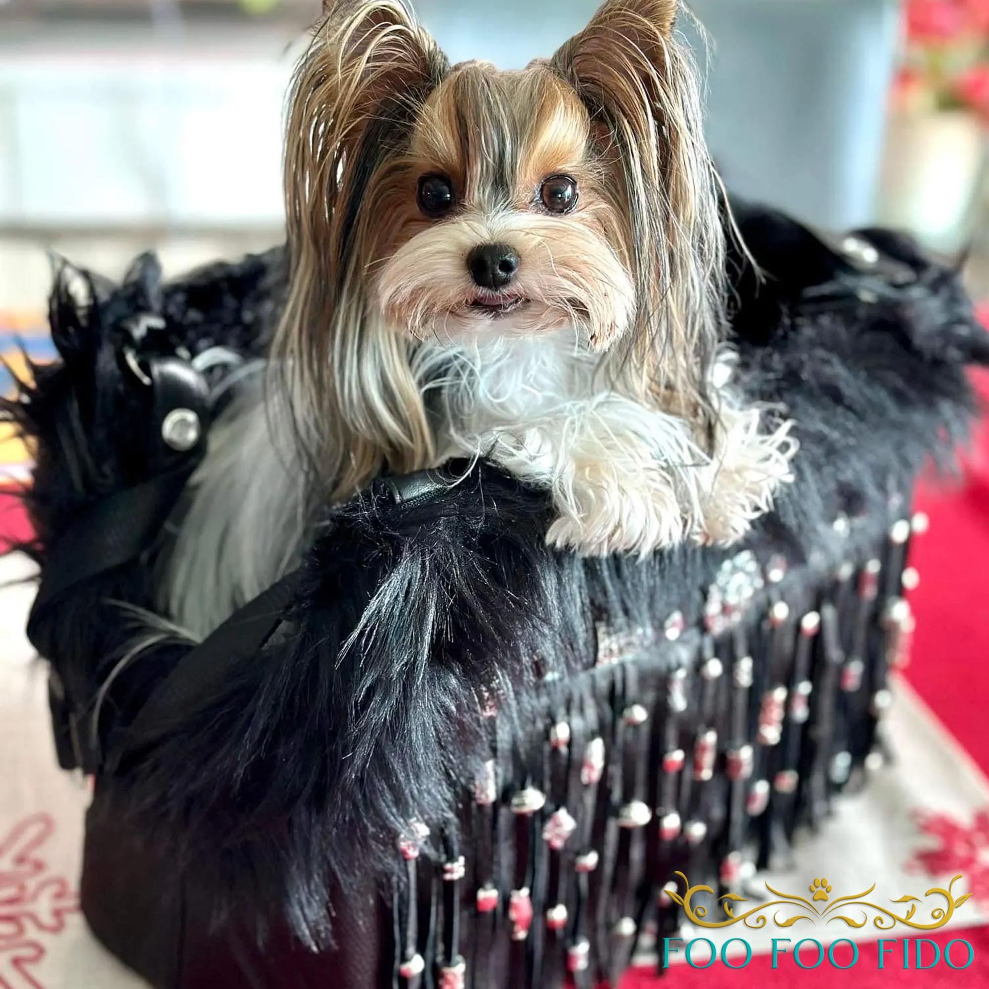 Boho Leather Fringe Dog Carrier – Travel Purse for Small Dogs 👜